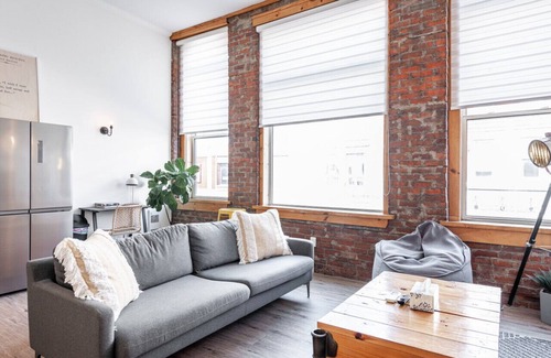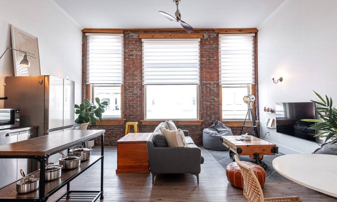 With its rustic twist and high ceilings, this loft captures the essence of London's Kings Road. Immense windows illuminate your stay, located centrally for easy access to Stratford’s cultural and culinary best. Just minutes from the Avon Theatre and river walks, it’s an urban haven for explorers. 2 bedrooms offer comfort for groups traveling together!