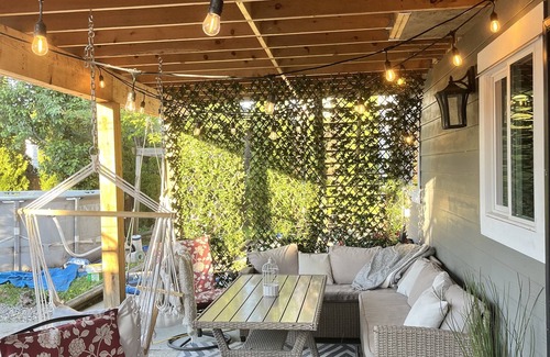 Comfortable, spacious & private, with a hot tub (year round) & above ground pool (seasonal). Electric fireplace, bikes, towels & water toys available for your use. 2 km from the vedder river & 5 km from cultus is lake, we have the perfect location for your family getaway/fishing trip/any other reason to vacay!