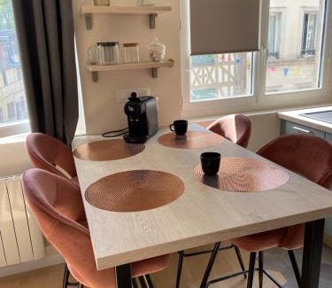 Juvanedi in Rouen provides accommodations with free Wifi, a 7-minute walk from Rouen-Rive-Droite Train Station, 2.4 miles from Rouen Kindarena Sports Hall, and 2.6 miles from Voltaire Station, Rouen. The property is around 3.3 miles from Hotel de ville de Soteville Station, Rouen, 3.8 miles from 14-juillet Tramway Station, Rouen, and 6.1 miles from Parc des Exposition de Rouen. The property is a 7-minute walk from Notre-Dame Cathedral of Rouen and within 500 yards of the city center. The apartment consists of 1 bedroom, a living room, a fully equipped kitchen with an oven and a coffee machine, and 1 bathroom with a shower and a hair dryer. A flat-screen TV with streaming services is provided. The accommodation is non-smoking. Musee des Beaux-Arts de Rouen is a 3-minute walk from the apartment, while Flaubert bridge is 2.5 miles away. Beauvais–Tillé Airport is 52 miles from the property.