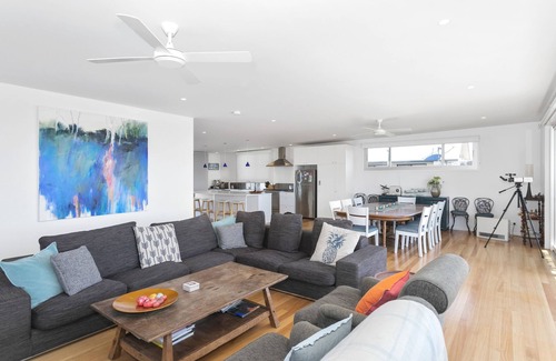 This summery two storey beach house is the perfect retreat for you and your family. Once a tiny beach shack, Juwin Beach House was designed and renovated to serve as the perfect escape, with plenty of indoor and outdoor space to relax and unwind. Huge glass sliding doors fill the house with natural light yet still maintaining it's privacy. Only a short walk to both Gannet and Cormorant beaches with world famous Bawley Point surf break right around the corner.