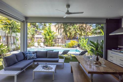 Kaaltier - Port Douglas Villa offers accommodations in Port Douglas, a 8-minute walk from Four Mile Beach and 0.7 miles from Crystalbrook Superyacht Marina. Both free Wifi and parking on-site are available at the vacation home free of charge. Outdoor seating is also available at Kaaltier - Port Douglas Villa. The accommodation features 3 bedrooms, a fully equipped kitchen with a dishwasher and an oven, a washing machine, and 4 bathrooms with a hair dryer. Towels and bed linen are featured in the vacation home. The accommodation is non-smoking. Guests can enjoy the outdoor swimming pool and garden at Kaaltier - Port Douglas Villa. Mossman Gorge is 12 miles from the vacation home, while Rainforest Habitat Wildlife Sanctuary is 1.6 miles away. Cairns Airport is 40 miles from the property.