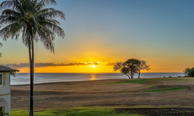 The lanai invites you to witness some of the most spectacular sunsets in Ko Olina. For an immersive experience, stroll to the nearby secluded cove and beach, where you can enjoy the sunset under a Banyan Tree, a quintessential Hawaii moment.