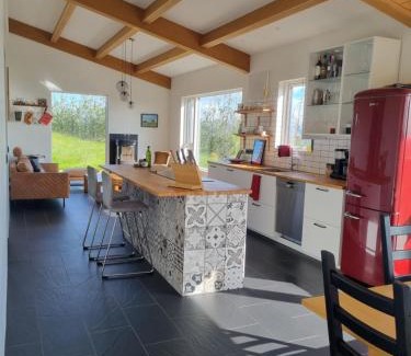 23 miles from Haifoss in Selfoss, Kambar provides accommodations with access to a hot tub. This property offers a private pool, free Wifi, and free private parking. Outdoor seating is also available at the villa. Featuring pool and garden views, this villa features 3 bedrooms and opens to a patio. Featuring a terrace with mountain views, this villa also includes a flat-screen TV, a well-equipped kitchen with a dishwasher, an oven, and a microwave, as well as 2 bathrooms with a shower and a hair dryer. There's also a seating area and a fireplace. For those times when you'd rather not eat out, you can cook on the barbecue. Guests at Kambar can enjoy hiking nearby, or make the most of the garden. Reykjavík Domestic Airport is 66 miles from the property.