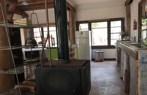 Fully self-contained cabin with small stand alone solar power system, gas stove and fridge, log fire heater, TV and lovely hot rainwater shower (great for hair and skin).