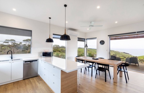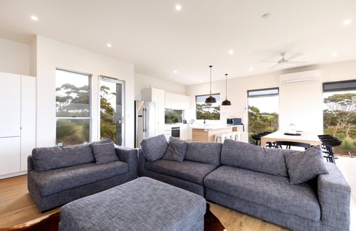 This recently completed Retreat has the luxury of 3 x King Beds, 2 x King Singles, 2 bathrooms and a great open plan kitchen, dining and lounge which makes it perfect of up to 8 guests. A large balcony with views towards the ocean and rolling hills makes it a unique place to sit back, relax and watch the wonderful views.