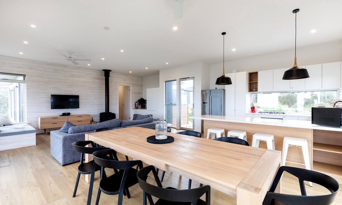 Best-rates for the Kangaroo Gully House starts from $286 per night with includes Ocean View, Entertainment, Hot Tub, Internet, Parking, Balcony/Terrace, Oceanfront, Fireplace/Heating, Barbecue/Outdoor Cooking, TV, View, Wellness Facilities, Laundry, Designated Smoking Area, Child Friendly, Kitchen With all other amenities. Float Homes offers a wide range of floating homes, houseboats, and water chalets, ensuring each traveler finds their ideal water escape, whether planning a water getaway, a family vacation, or a pet-friendly retreat with the whole group.