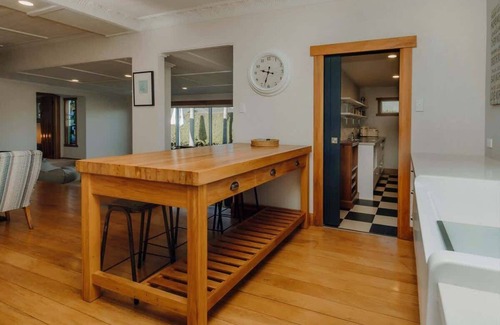 Every detail in Karamu Korner has been thoughtfully designed to ensure a relaxing stay. The open-plan living spaces are cleverly designed, allowing guests to spread out and unwind. The efficient Pyro wood fire keeps the home warm during winter, while the well-set-out decking area with outdoor couch and loungers captures the afternoon sun, perfect for relaxation.