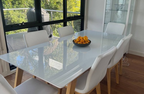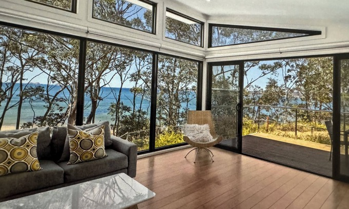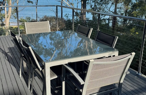 Enjoy this superb modern beach house with breathtaking views across Long Beach and the Bay. Sit in peaceful and idyllic surroundings on the large front deck and contemplate the ever-changing ocean, beach frolics, spotted gums and native birdlife.
