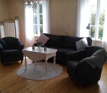 Karlstugan Cottage offers accommodations in Vimmerby, 9.2 miles from Astrid Lindgren's World. This beachfront property offers access to a patio and free private parking. On clear days, guests can head outside to enjoy the vacation home's outdoor fireplace or simply kick back and relax. Providing a terrace and garden views, the vacation home includes 3 bedrooms, a living room, satellite flat-screen TV, an equipped kitchen, and 1 bathroom with a shower. For added convenience, the property can provide towels and linens for a supplement. For added privacy, the accommodation features a private entrance. There is a garden with a barbecue at this property, and guests can go fishing and hiking nearby. Linköping City Airport is 70 miles away.