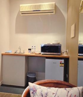 Food & DrinkTea/Coffee maker, Bottle of waterBathroomBody soap, Free toiletries, Bathtub or shower, Conditioner, Toilet, Toilet paper, Towels, Hairdryer, Private bathroom, Shower, ShampooMedia & TechnologyTV, Flat-screen TVGeneralInterconnecting room(s) available, Heating, Carpeted, Ironing facilities, Iron, Trash cans, Smoke Alarm, Private entrance, Air conditioningKitchenMicrowave, Kitchenette, Dining table, Kitchenware, Wine glasses, Electric kettle, Toaster, RefrigeratorOutdoorsBalcony, Terrace, Outdoor furnitureLiving AreaSitting areaViewGarden view, ViewBedroomWardrobe or closet, LinensRoom AmenitiesClothes rack, Non-feather pillow, Socket near the bed |