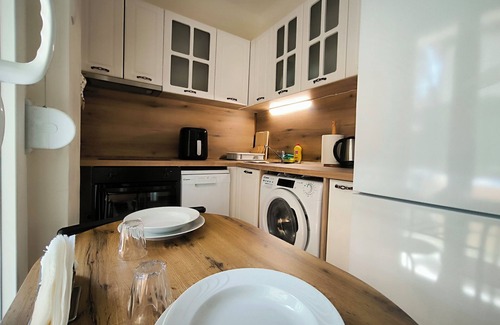 Welcome to our charming and spacious apartment in Thessaloniki, designed for comfort and relaxation. The living room is inviting, with cozy new furnishings and abundant natural light streaming in through two French windows. It’s perfect for unwinding, and the adjoining dining area boasts a large table and comfortable chairs, ideal for meals or gatherings. Enjoy our smart TV, offering access to the PLEX platform with a rich collection of movies, sports, TV series, and online channels. Our fully equipped kitchen has all the modern appliances you need to prepare meals effortlessly. Both bedrooms are thoughtfully designed and provide direct access to a small private garden, where you can enjoy a partial sea view of the Port of Thessaloniki. This serene backyard is perfect for a morning coffee or an evening drink while watching the city’s port. The garden is private and accessible only from the apartment, as it is situated at a higher level at the back of the building. Located in a free parking zone, finding a spot for your car is convenient and hassle-free. Everything in this beautiful apartment is brand new, clean, and ready for your stay, offering a perfect blend of tranquility and convenience. Experience the best of Thessaloniki and its surroundings from the comfort of our home.