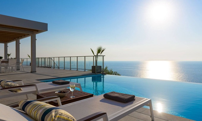 Not many Villas in Lefkada can boast such breath-taking Ionian Sea views combined with a high-quality finish and level of service. KATHISMA BAY VILLAS, a complex of two luxury contemporary designed villas, VILLA OCEANOS and VILLA HELIOS, is situated on the beautiful West Coast of Lefkada, in an elevated secluded hillside location directly overlooking Kathisma Beach. The property is with OUTSTANDING panoramic sea views and spectacular sunsets overlooking the Ionian Sea.