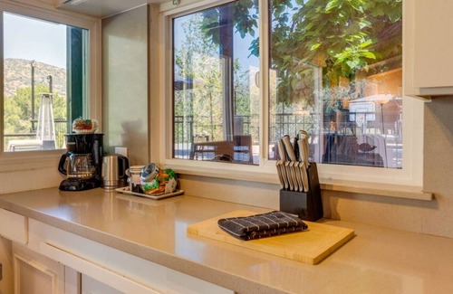 Inside, you'll find a warm and inviting living area equipped with a flat-screen TV, board games, and even a guitar for impromptu jam sessions. The fully equipped kitchen makes meal prep a breeze, whether you're enjoying a quick breakfast or cooking a feast to share on the spacious outdoor dining area.