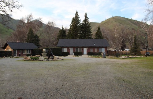 Welcome to the Kaweah River Jacuzzi Room, a cozy riverside studio nestled along the main fork of the scenic Kaweah River. Perfect for a peaceful getaway, this unique middle unit is one of three rentals on a private, tree-lined 2+ acre property-complete with direct river access, a sandy beach, and even a friendly horse named Robbie who loves greeting guests!