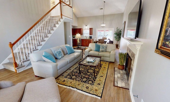 You will love this area and may be the closest newly renovated STR to Keeneland and Bluegrass Airport! Located in the quiet neighborhood off Harrodsburg Rd/Man O War. Close to restaurants, grocery stores, shopping centers, and 15 minutes to downtown. 3-bedroom, 2-full bath home features an open floor plan, 9' ceilings, formal dining room w/ lots of natural light, spacious 2-story vaulted great room, luxury vinyl plank flooring, stainless and granite kitchen open to the family room, gas log fireplace, generous sized bedrooms, gas grill. Parking in driveway or on street.