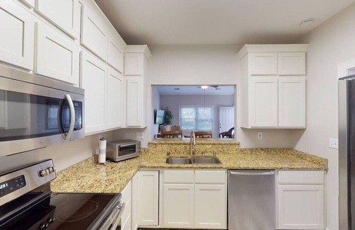 May be the closest STR to Keeneland and Bluegrass Airport! Located Harrodsburg Rd/Man O War. Close to restaurants, grocery stores, shopping centers, and downtown. Backing up to green space, this 3-bedroom, 2-full bath home features an open floor plan, 9' ceilings, formal dining room w/ lots of natural light, spacious vaulted great room, luxury vinyl plank flooring, stainless and granite kitchen open to the family room, generous sized bedrooms. Patio area with table for 4, grill and umbrella.