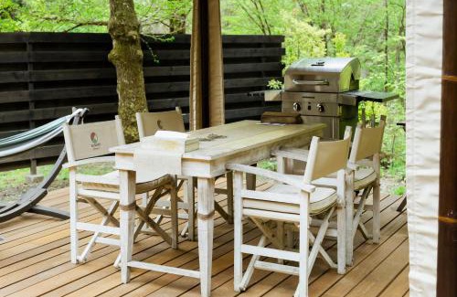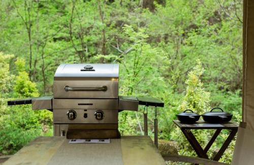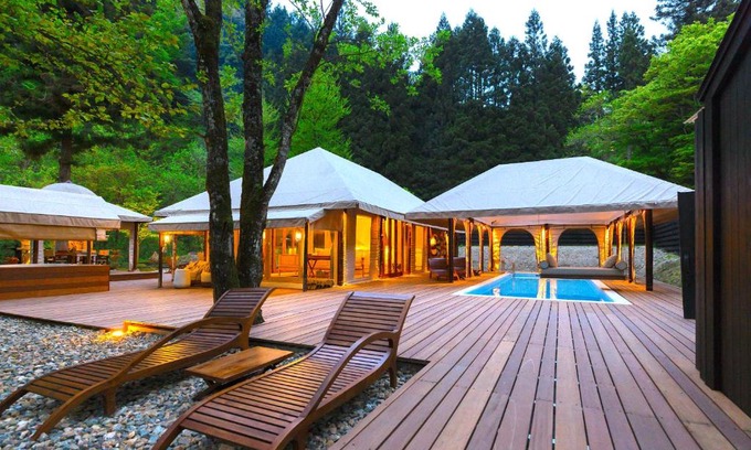 KEIKOKU GLAMPING TENT features a sauna and free private parking, and is within 29 miles of Mount Takao. This luxury tent provides an outdoor swimming pool, a garden, and barbecue facilities. Guests can use the hot tub or enjoy mountain views. The air-conditioned units have a fully equipped kitchenette with dining area, a fridge, kettle, and kitchenware. Every room comes with a coffee machine, a private bathroom, and free Wifi, while certain rooms are fitted with a terrace and some have pool views. At the luxury tent, every unit comes with bed linen and towels. The luxury tent offers an à la carte or American breakfast. Tokyo Haneda Airport is 57 miles from the property.