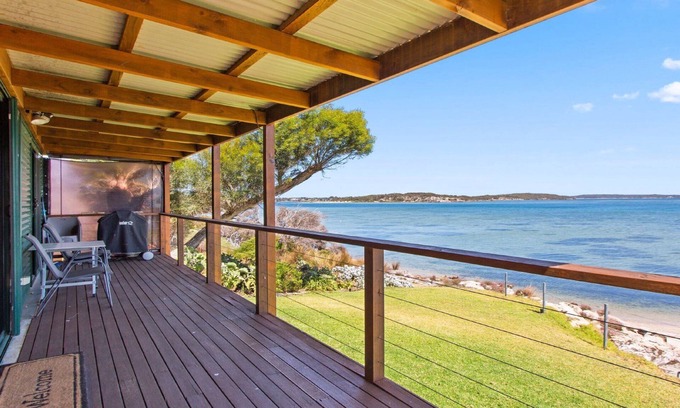 Absolute waterfront property catering for a couple who want a quiet getaway and relax by the seaside.
