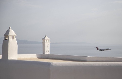 The modern island-chic interiors are the perfect combination of traditional Cycladic architecture and modern luxury.