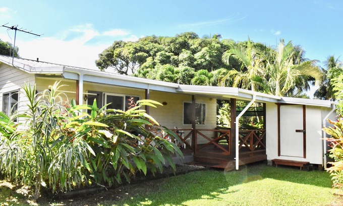 Set in the village of Titikaveka on the south side of Rarotonga, down a winding family road amongst fruit trees and wild ginger is Kia Manuia Cottage.