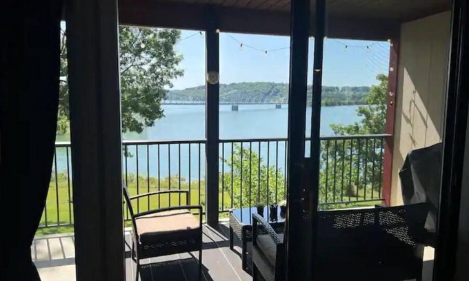 First time opened for rental. This newly renovated unit has only three steps into the unit. The view of the bridge is expansive. It’s perfect for watching the boats go by and enjoying the fall views. This unit sleeps 8 but is perfect for a romantic get away. Besides the amazing view of table rock this unit boast of all you need for a weekend get away. It’s 15 minutes from Silver Dollar City and close enough to Branson but without the craziness of the traffic. There is a pool may-sept