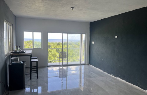 The living and kitchen area is spacious and open concept with large windows and a large sliding glass door with direct view to the sea.. We are still furnishing this area, but it is fully functional. The bedroom is also spacious with a comfortable queen sized bed, lots of natural light, big windows, and a large sliding glass door with direct view to the sea. The bedroom also includes a walk-in closet.