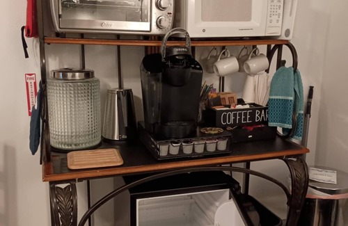 In the morning, enjoy your coffee just the way you like it from the fully stocked snack and coffee bar—Keurig pods, teas, and breakfast essentials await.