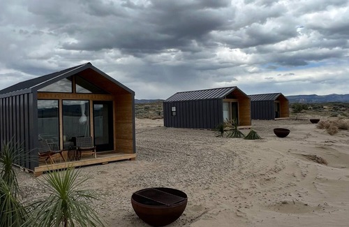 King Bed-Firepit-Shade-Chairs-Dark Skies | Cabin in Levan