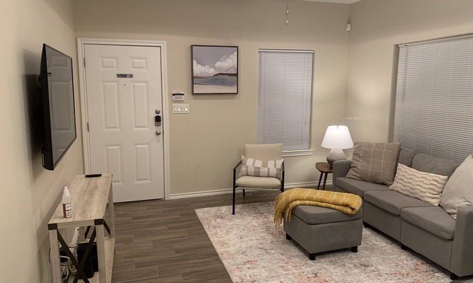 Welcome to this charming townhome as your home away from home in between area attractions! Conveniently located near UTRGV, Museum of South Texas History, Bert Ogden Arena, shops, restaurants, and multiple healthcare facilities. Guests will experience the ultimate in hospitality in this cozy 2 bedroom 2 bathroom space with open concept family room. The outdoor terrace is great to unwind. Save lots of money by making your own meals utilizing our fully-stocked kitchen with full size appliances. Home has plenty of cabinet space with pantry and in unit laundry room with additional amenities such as full-size washer/ dryer, ironing board, etc. This space is perfect for families, couples, corporate travelers, or lone wanderers for short or long-term stays. All you need to do is unpack your suitcase, kick back and enjoy!