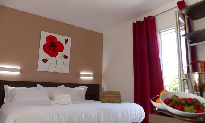 Beautifully decorated single rooms, 1-bedroom mini villas with equipped terrace, or 2-bedroom villas with private garden parking and barbecue.