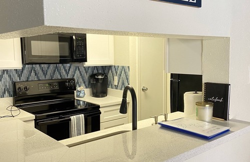Beautiful one bedroom condo with fully stocked kitchen and bathroom, wifi and 2 smart TV's and a full sized washer and dryer. Located on the west end just 1/2 mile from the beach near Schlitterbahn, Moody Gardens, restaurants and lots of beaches! Great couples retreat or a small family getaway! This condo has many amenities that you will enjoy or you can venture out on the island to the Pleasure Pier, the Strand, museums, there are lots of shopping opportunities or maybe visiting UTMB!