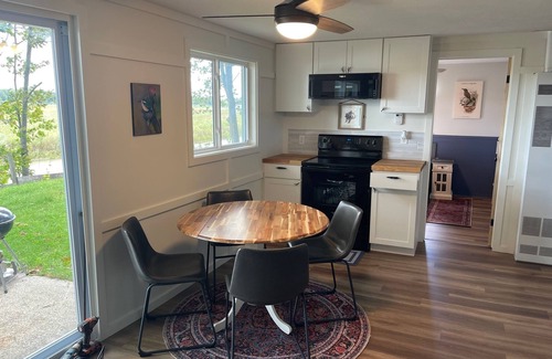Kingfisher Cabin, just 9 minutes from Midland, overlooks the river and the lakebed from the former Sanford Lake. The large windows open to sweeping views. In the morning, enjoy a spectacular sunrise. In the evenings, enjoy the stars or moonrise by the campfire. This cozy cabin has wide windows and a private open porch overlooking the river where guests may see ducks, birds, and if they are lucky - bald eagles. The fully finished kitchen has all the amenities you need. A tastefully decorated and a charming atmosphere will greet you and your guests! Come and enjoy the best views in the Midland area, and the perfect place to stay!