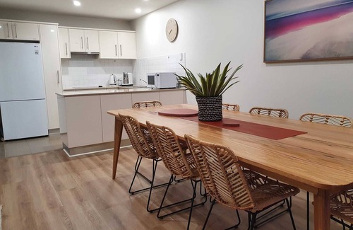 With a spot-on address in the heart of Kingscote, this stylish 3-storey townhouse is perfectly positioned - cafés, shops, jetty, beach, park & coastal trails just steps away. Modern, neutral décor & an upmarket 'hotel-style' feel throughout, designer furniture, comfy beds, white hotel-grade linens, mains water, air conditioned throughout, under cover Table Tennis for added fun!