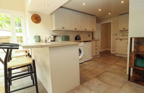 Amenities: Oven, hob, fridge/freezer, microwave, washing machine, kettle, toaster. Smart TV, TV, selection of books, WiFi. Fuel, and power, inc. in rent. Bed linen and towels inc. in rent. Off-road parking for 1 car. Garden with patio, decking, furniture, and summer house with hot tub. Two well-behaved dogs welcome. Sorry, no smoking. Shop 0.8 miles, pub 2.9 miles. Note: This property is on a working farm, dogs must be kept on leads near livestock and through the fields. Note: Cot and highchairs are not provided, please bring your own. Please note: bookings can be taken from a Friday or Monday only.