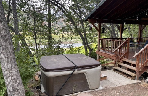 We take pride in our carefully stocked kitchen, equipped with everything you need to prepare delicious meals. In the colder months, cozy up by the wood stove (firewood not provided) or soak in the 7 seat hot tub overlooking the river. You'll also have access to a covered deck and a flat grassy lawn, perfect for picnics and outdoor activities.