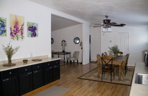 Our 3 bedroom/2 bath home sleeps 5 (+) people. Available for your use is a pack n play and two 6" tri-fold mattresses; twin and queen, with platform frames. The fully equipped kitchen has everything you need to make simple or gourmet meals. Klondike Cottage also has a large chest freezer available for guests to store their catches from Prince William Sound! Like virtually all homes in Alaska, we do not have A/C, however, we have provided fans for guests to use, and may provide additional fans upon guest request.