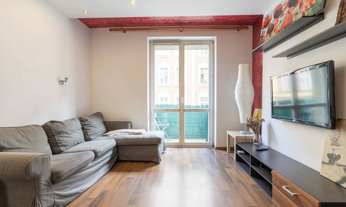 Kochanowskiego City Centre Apartment features a living room with a seating area, two separate bedrooms with comfortable double beds, a kitchen, a bathroom, and a balcony where guests can relax and enjoy a morning coffee or an evening glass of wine. Guests have access to various amenities, including free WiFi, a washing machine, iron, hairdryer, dishwasher, oven, fridge with freezer, induction cooktop, microwave, toaster, coffee maker, and kitchen accessories. The apartment has a TV that can be connected to a laptop via cable. There is no cable television.