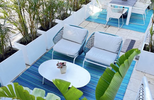 The Sun drenched terrace with dining table is on the downstairs mezzanine level. The landscaped tropical garden downstairs is a shared space with our family and dog and offers perfect outdoor living additions to the apartment.