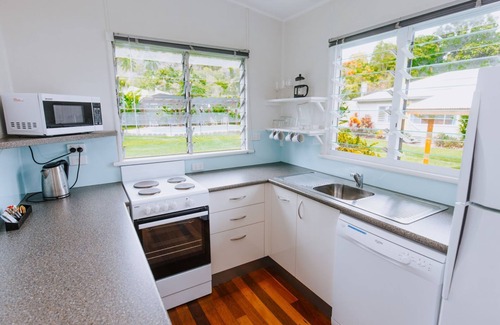 The recently renovated iconic Kooyong Units have been transformed! This 2 bedroom apartment is fully self contained, air-conditioned and has free WiFi. The solar heated pool and BBQ area has also been renovated now providing a fantastic area for families and friends to enjoy. Kooyong Holiday Units are nestled amidst a tropical garden setting in Arcadia. There are 8 units with 1 or 2 bedroom options and located only 100 metres from Alma Bay Beach.