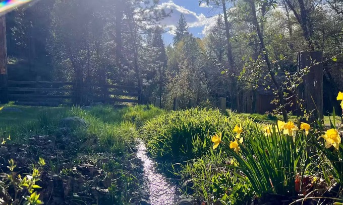 Come relax at Koozee Farm where you will stay next to a babbling creek, vegetable garden and adorable chickens. Take a walk to the bridge that crosses the Scott River or to the apple, pear and plum trees throughout the property. The rustic cottage is located 3 min. from the Callahan Emporium where you can grab a beer and burger or drive to Etna to visit the bakery, butchery, distillery or brewery.