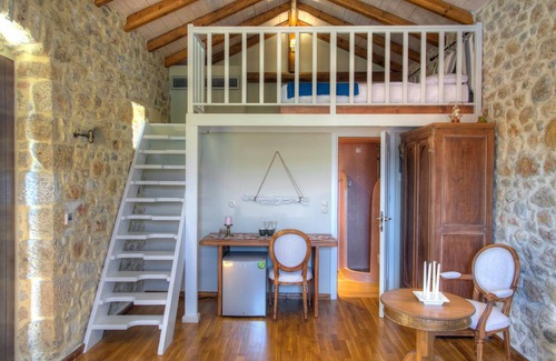 Experience the genuine hospitality of Mani by indulging in our Family Suite. Our suite features a bedroom with a double bed, alongside an internal staircase leading to a loft area with two single beds (double bed upon request). This type of room is suitable for families with 2 adults and 2 children.
