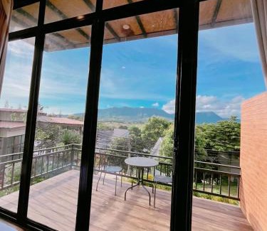 Food & DrinkBottle of water, Tea/Coffee makerBathroomShower, Shower cap, Private bathroom, Towels, Hairdryer, Shampoo, Toilet paper, Body soap, Free toiletriesGeneralTrash cans, Air conditioningOutdoorsBalcony, TerraceKitchenRefrigerator, Electric kettleLiving AreaSitting area, Dining areaMedia & TechnologyFlat-screen TV, Satellite channelsViewMountain view, ViewRoom AmenitiesSocket near the bed |