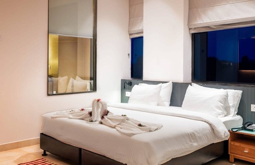 Krishna Courtyard Hotel And Convention offers 66 air-conditioned accommodations with complimentary bottled water and complimentary toiletries. Beds feature Frette Italian sheets and premium bedding. A pillow menu is available. 24-inch LED televisions come with digital channels.