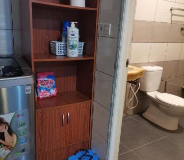 BathroomTowels, Shower, Toilet paper, Bathtub or shower, Shampoo, Toilet, Free toiletries, Hairdryer, Private bathroom, Body soap, BidetGeneralHeating, Air conditioning, Fire extinguisher, IronKitchenRefrigerator, Dining table, Cleaning products, Stovetop, Kitchenette, Washing machine, Kitchen, Kitchenware, High chairLiving AreaSitting area, Sofa, Desk, Dining areaMedia & TechnologyFlat-screen TVBedroomWardrobe or closet, LinensRoom AmenitiesClothes rack, Drying rack for clothing, Fold-up bed |