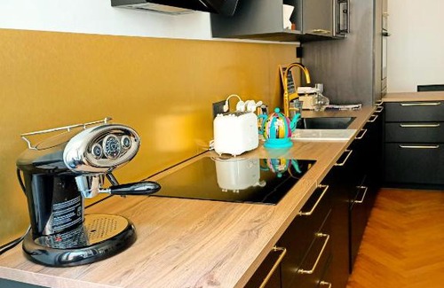 Featuring a terrace and a 24-hour front desk, Kunst fünf is conveniently set in Gorizia, 32 km from Palmanova Outlet Village and 39 km from Miramare Castle. Private parking is available on site. The apartment is equipped with 2 bedrooms, 2 bathrooms, bed linen, towels, a flat-screen TV with satellite channels, a dining area, a fully equipped kitchen, and a balcony with city views. A bicycle rental service is available at the apartment. Trieste Train Station is 44 km from Kunst fünf, while Piazza Unità d'Italia is 45 km away. The nearest airport is Trieste Airport, 30 km from the accommodation.