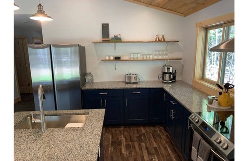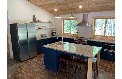 Our 2 BR, 2 BA cabin is brand new construction with a modern feel, close to the trails. You can bike/walk to town & the beach and easily access the mountain bike trails without even getting in your car! The vaulted ceilings in the main living area make it feel so spacious, and you will love the cozy wood-burning fireplace to warm you up after a day adventuring!