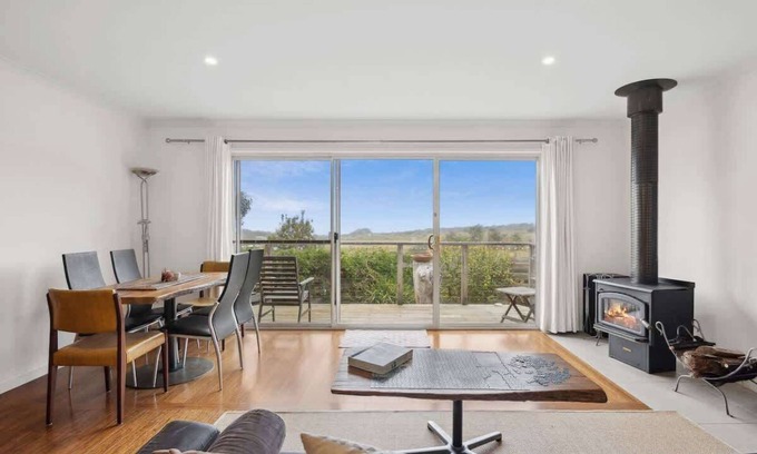 This small and cosy 2-bedroom house in Anglesea offers a charming coastal retreat with stunning views of the ocean and Aireys Inlet, including the iconic Split Point Lighthouse. Perfect for a relaxing getaway, the property provides a peaceful atmosphere and is ideally located just a short walk to the beach. Nestled opposite the Anglesea Heath, a protected nature reserve, you may even spot kangaroos grazing right outside the property – a true touch of the local wildlife. The home is also a short drive to popular destinations like Point Roadknight Beach, Urquharts Bluff Beach, and the vibrant Anglesea town centre. Ideal for couples or small families looking to immerse themselves in the natural beauty of the Great Ocean Road while being close to local attractions and beaches.