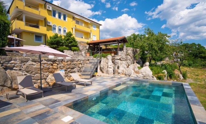 Best-rates for the Kvarner house by Interhome starts from $141 per night with includes Pool, TV, Internet, Kitchen, Parking, Balcony/Terrace, Bedding/Linens, Barbecue/Outdoor Cooking, Air Conditioner, Wellness Facilities, Fireplace/Heating, Guest Services, Hot Tub, Laundry, Security/Safety, Child Friendly With all other amenities. Float Homes offers a wide range of floating homes, houseboats, and water chalets, ensuring each traveler finds their ideal water escape, whether planning a water getaway, a family vacation, or a pet-friendly retreat with the whole group.