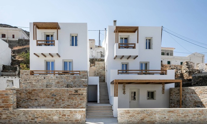 KYTHNOS BLUE is a newly built accommodation with traditional Cycladic architecture and modern amenities in the heart of Loutra - Kythnos, that offers four family one-room suites, each with balcony and sea view . Our aim is to provide an authentic accommodation experience with an emphasis on hospitality and comfort.