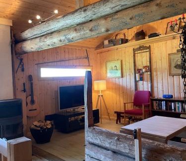 Food & DrinkTea/Coffee makerBathroomTowels, Toilet, Toilet paper, ShowerMedia & TechnologyTV, Flat-screen TVKitchenRefrigerator, Kitchenware, Oven, Kitchen, Electric kettle, Dining table, StovetopLiving AreaSofa, Sitting area, FireplaceOutdoorsOutdoor dining area, Patio, Outdoor furnitureGeneralHeating, Fire extinguisher, Private entrance, Smoke Alarm, Trash cans, Key access, Hardwood or parquet floors, Tile/Marble floorViewMountain view, View, Garden viewBedroomChildrens' cribs, LinensBuilding CharacteristicsDetached, Private apartment in buildingEntertainment & Family ServicesBoard games/puzzles, Baby safety gatesRoom AmenitiesSocket near the bed, Sofa bed |